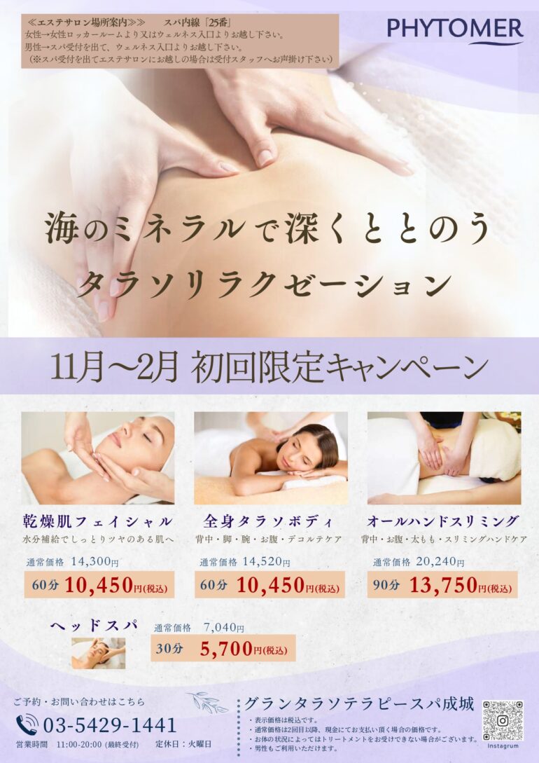 【タラソ】11月~26年2月限定キャンペーンのお知らせ♪